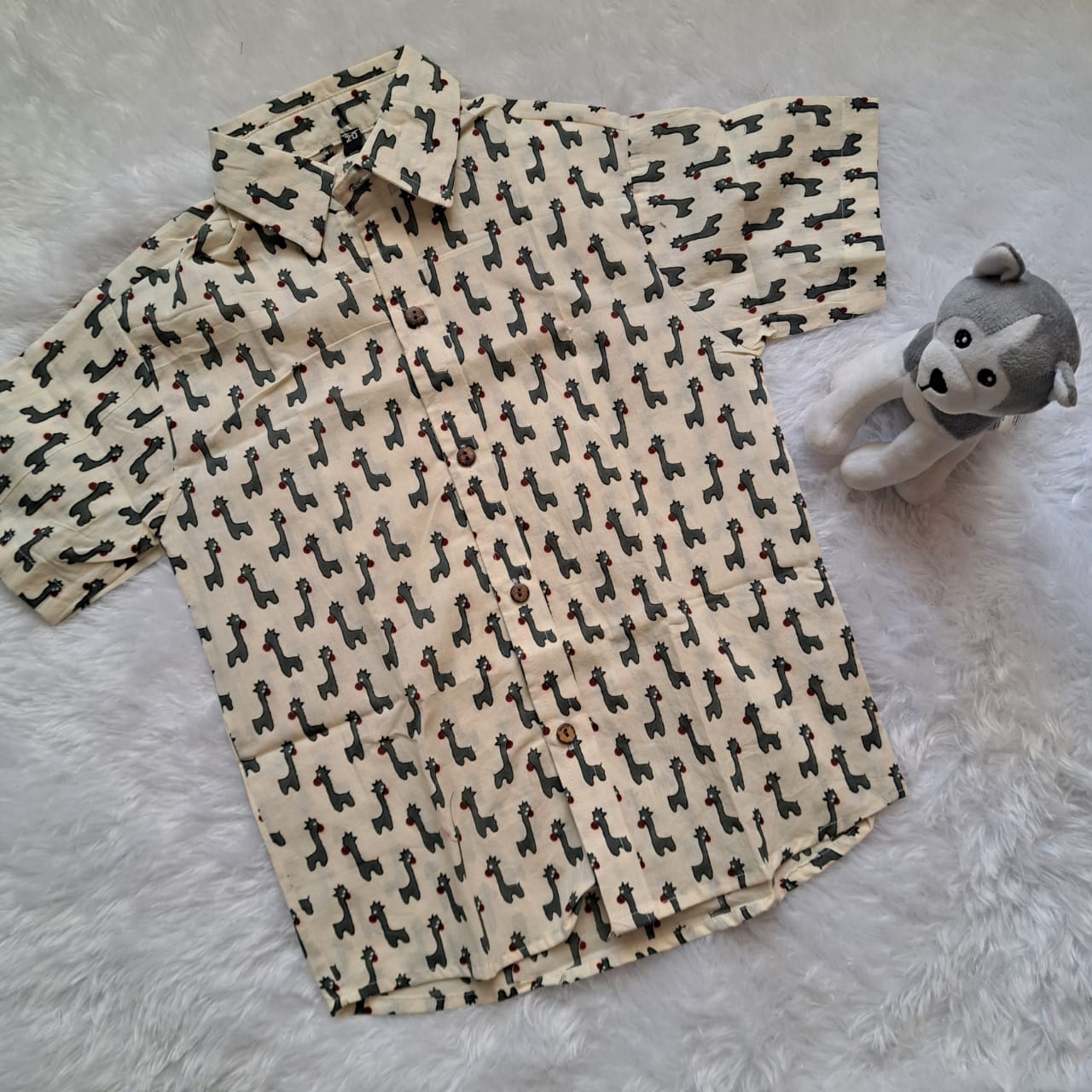 Giraffe Print Cotton Shirt for Kids (4-5 Years) – Soft & Stylish | Handwash Only