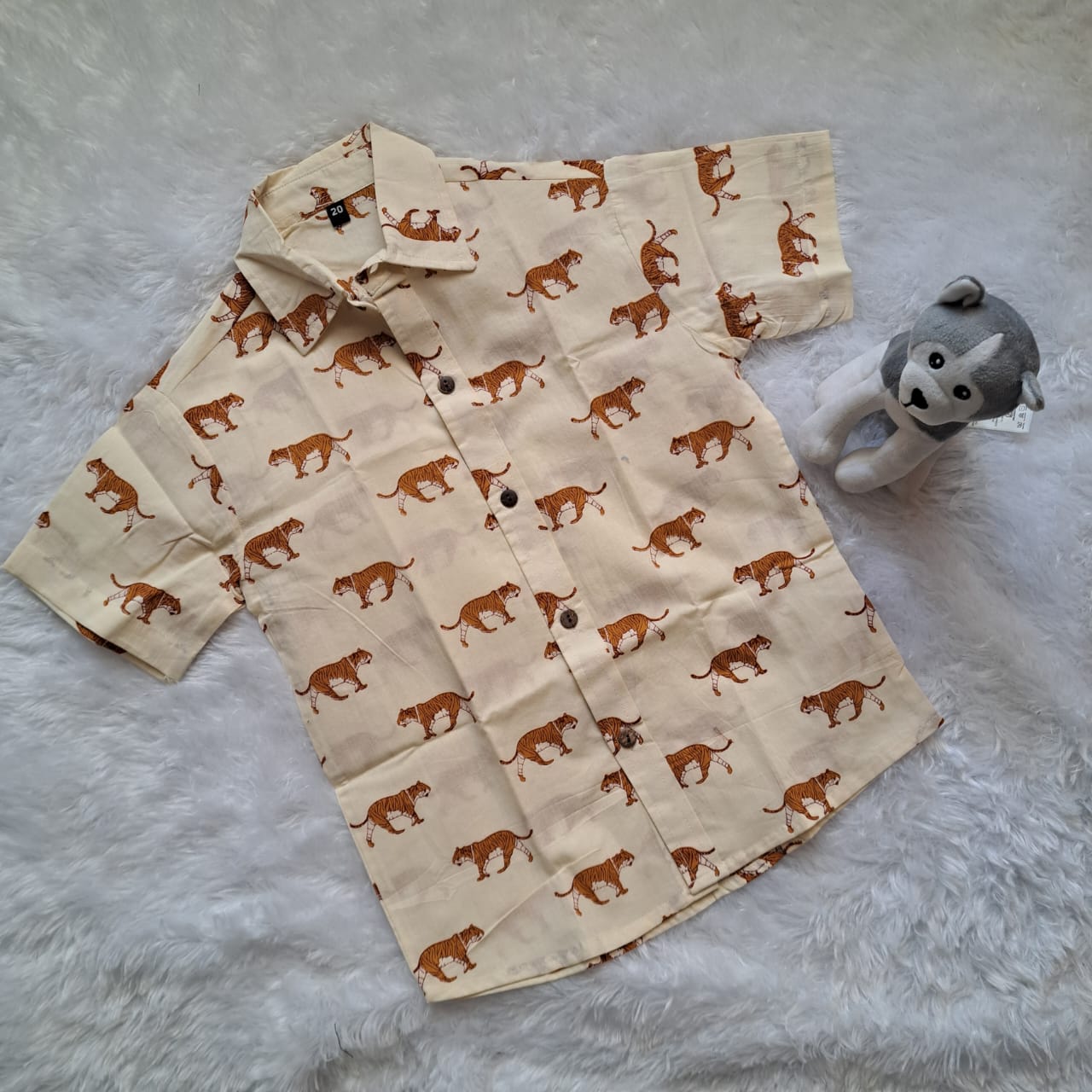 Light Tiger Print Cotton Shirt for Kids (4-5 Years) – Soft & Bold | Handwash Only